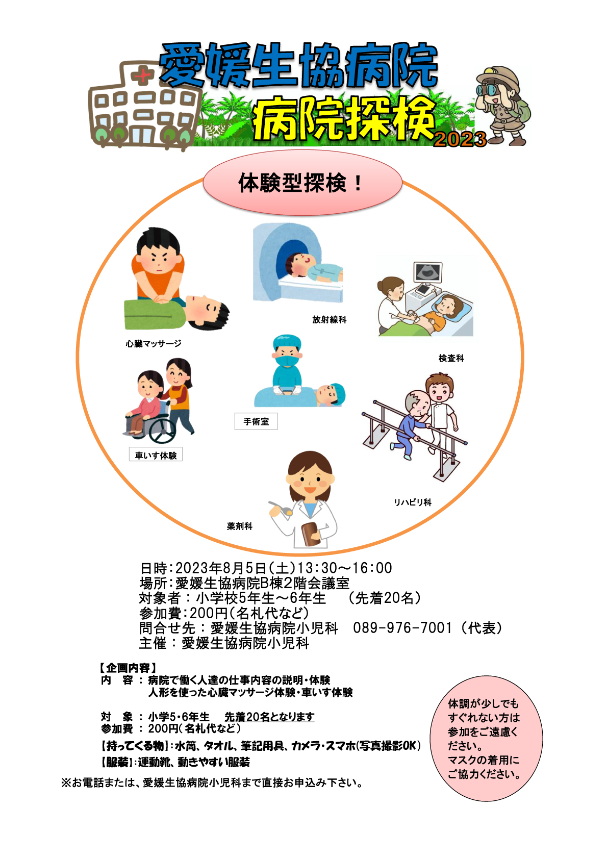 8月5日(土)午後から病院探検があるため、診療受付を10時30分までとさせて頂きます。