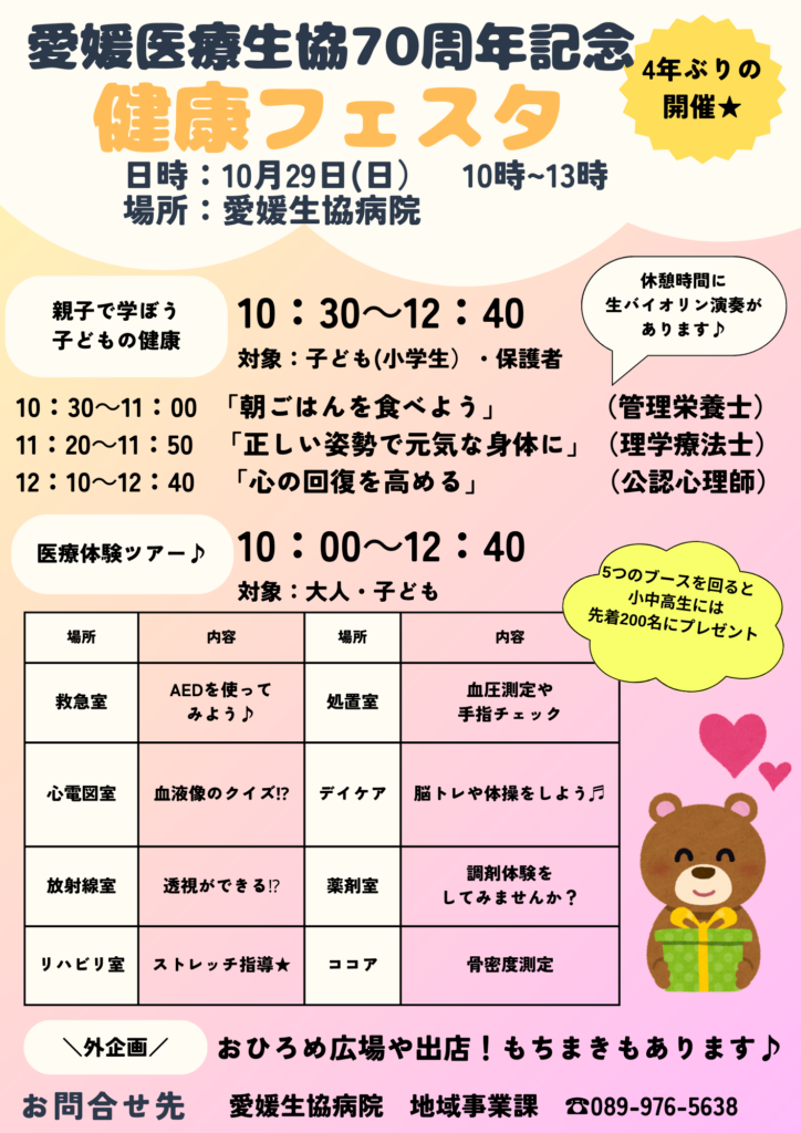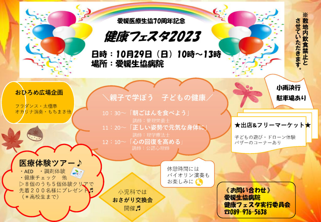 10/29(日) 愛媛医療生活協同組合70周年記念 健康フェスタを開催いたします。