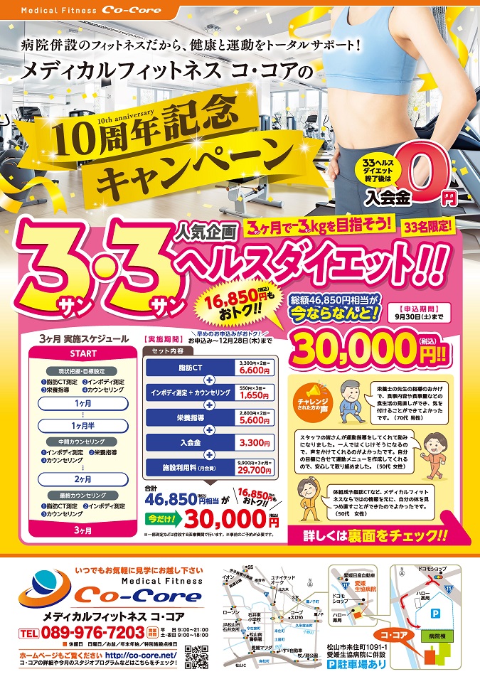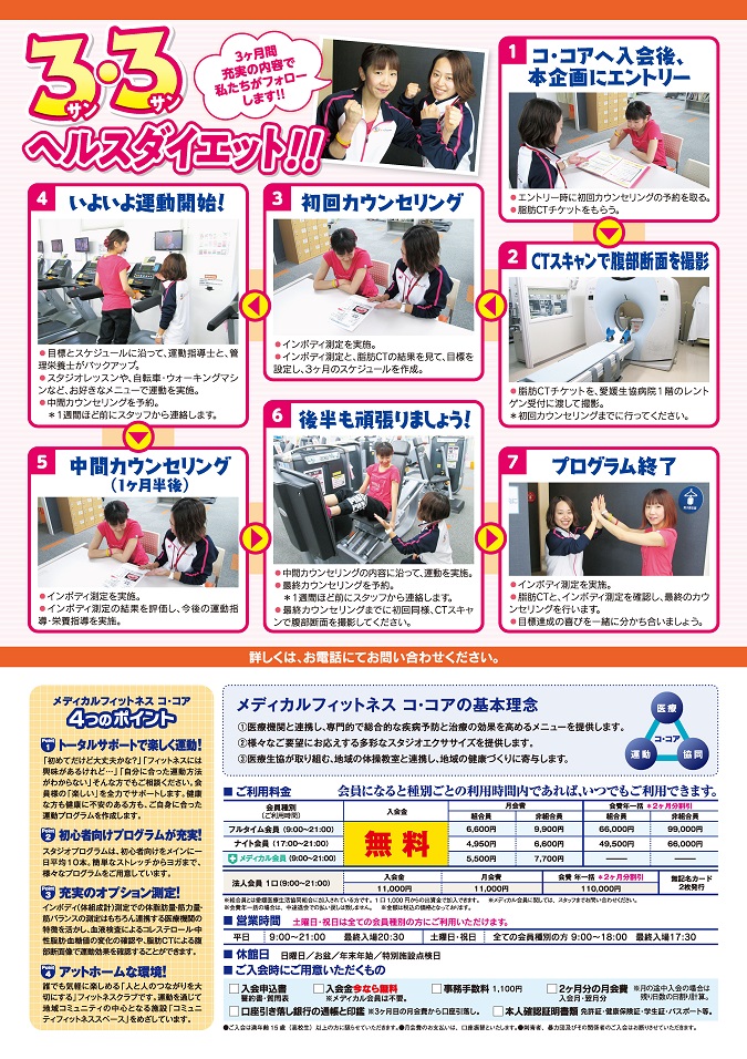 メディカルフィットネス Co-Core 3.3ヘルスダイエットキャンペーン中