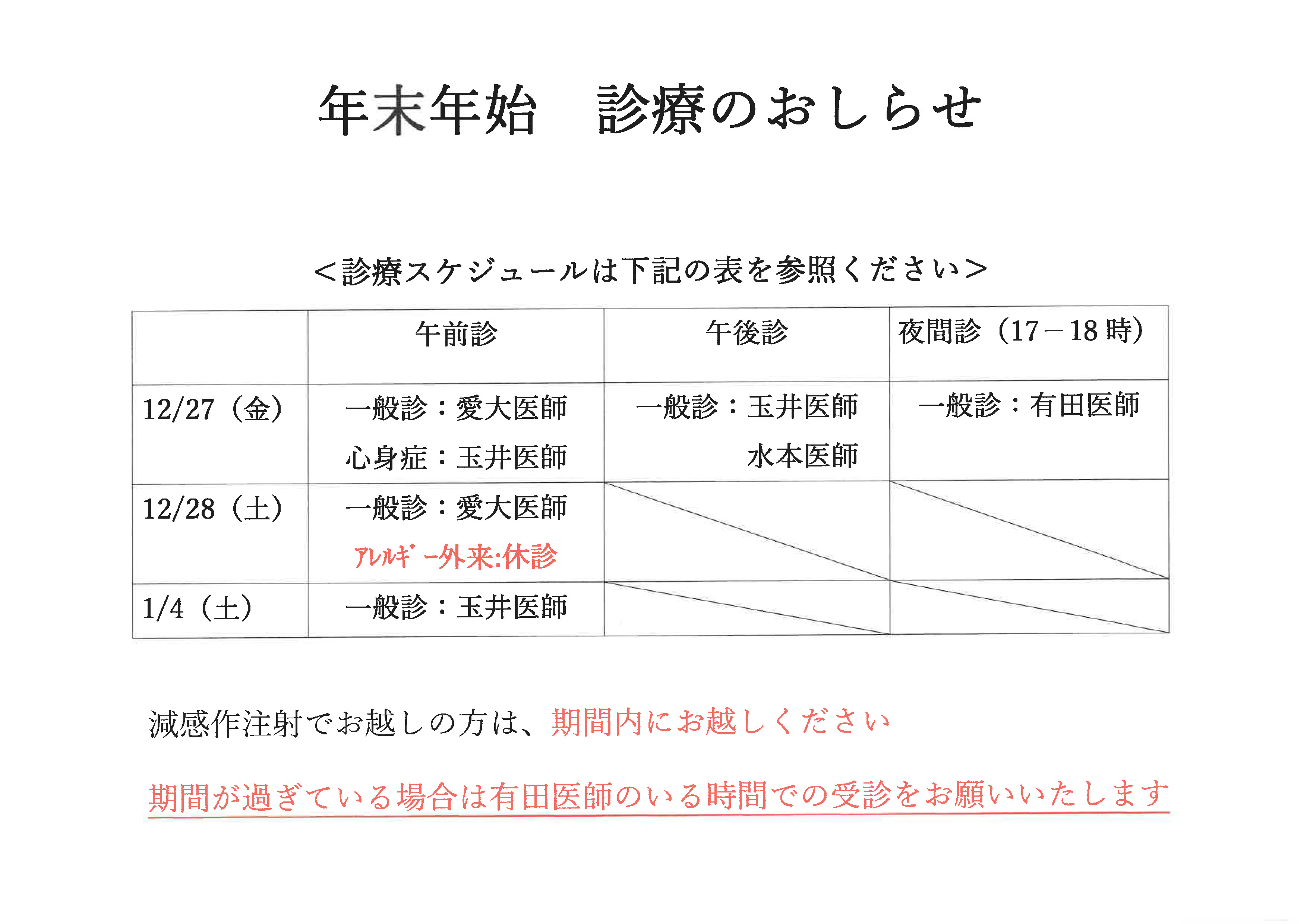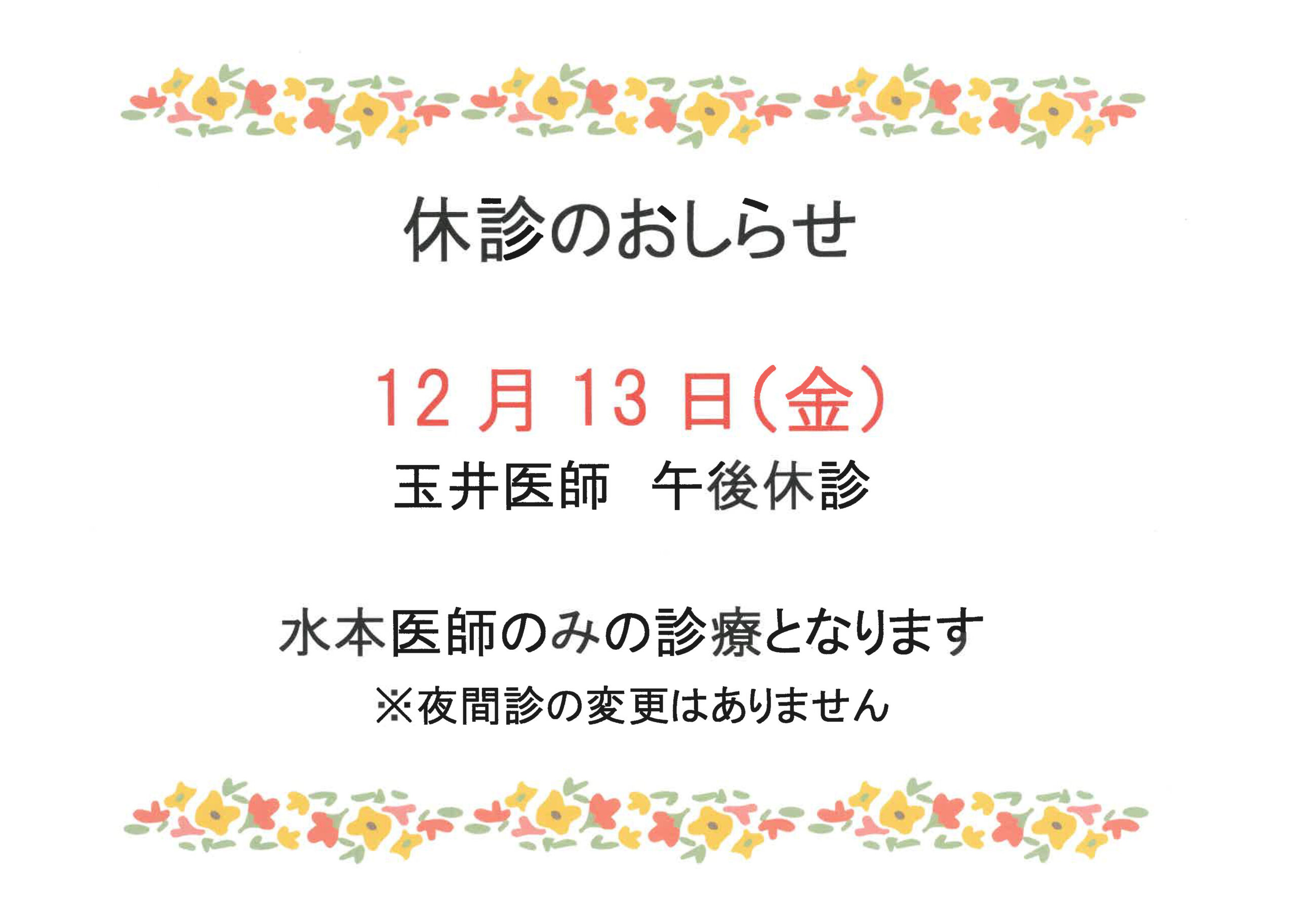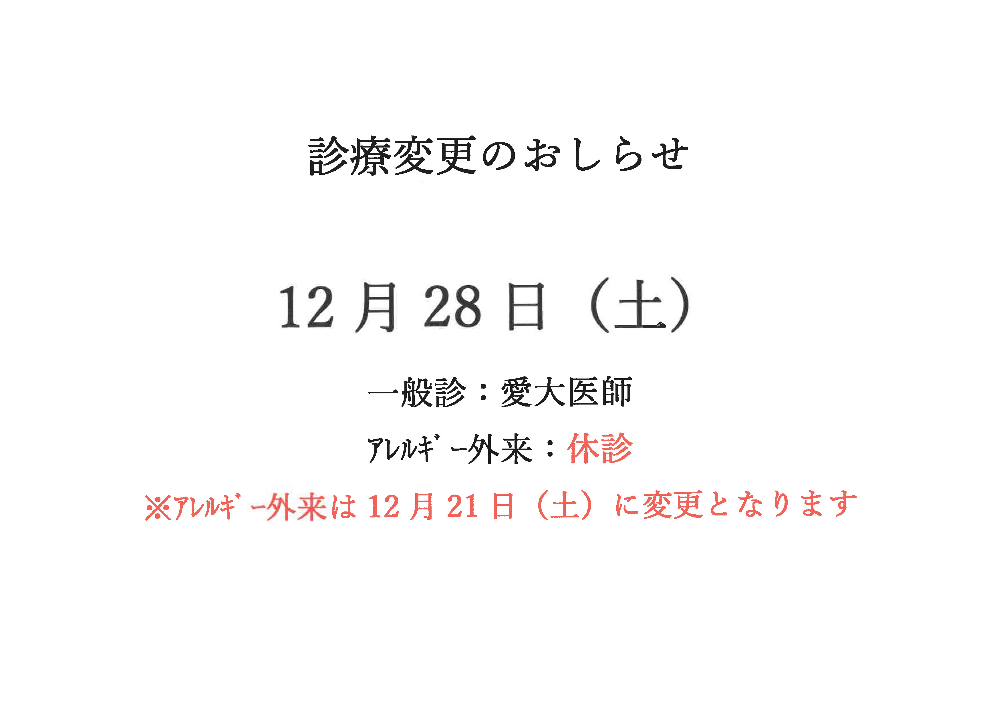 小児科 年末年始 診療変更のお知らせ