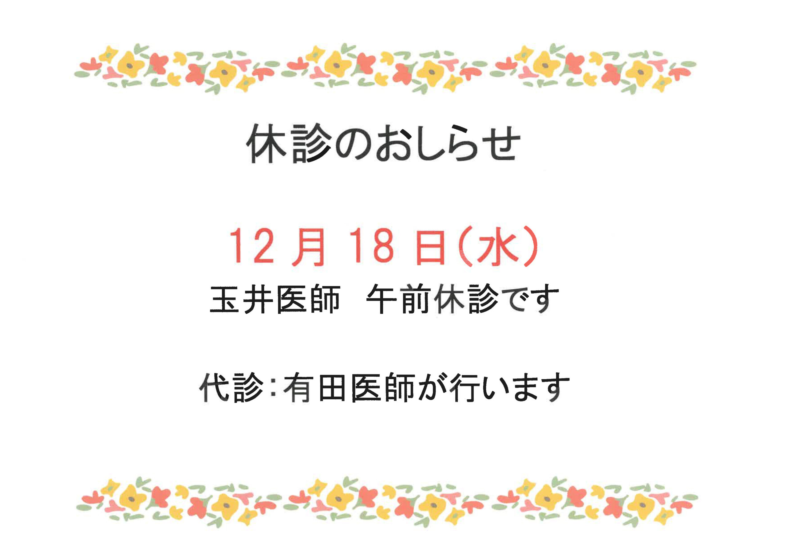 小児科より休診のお知らせ
