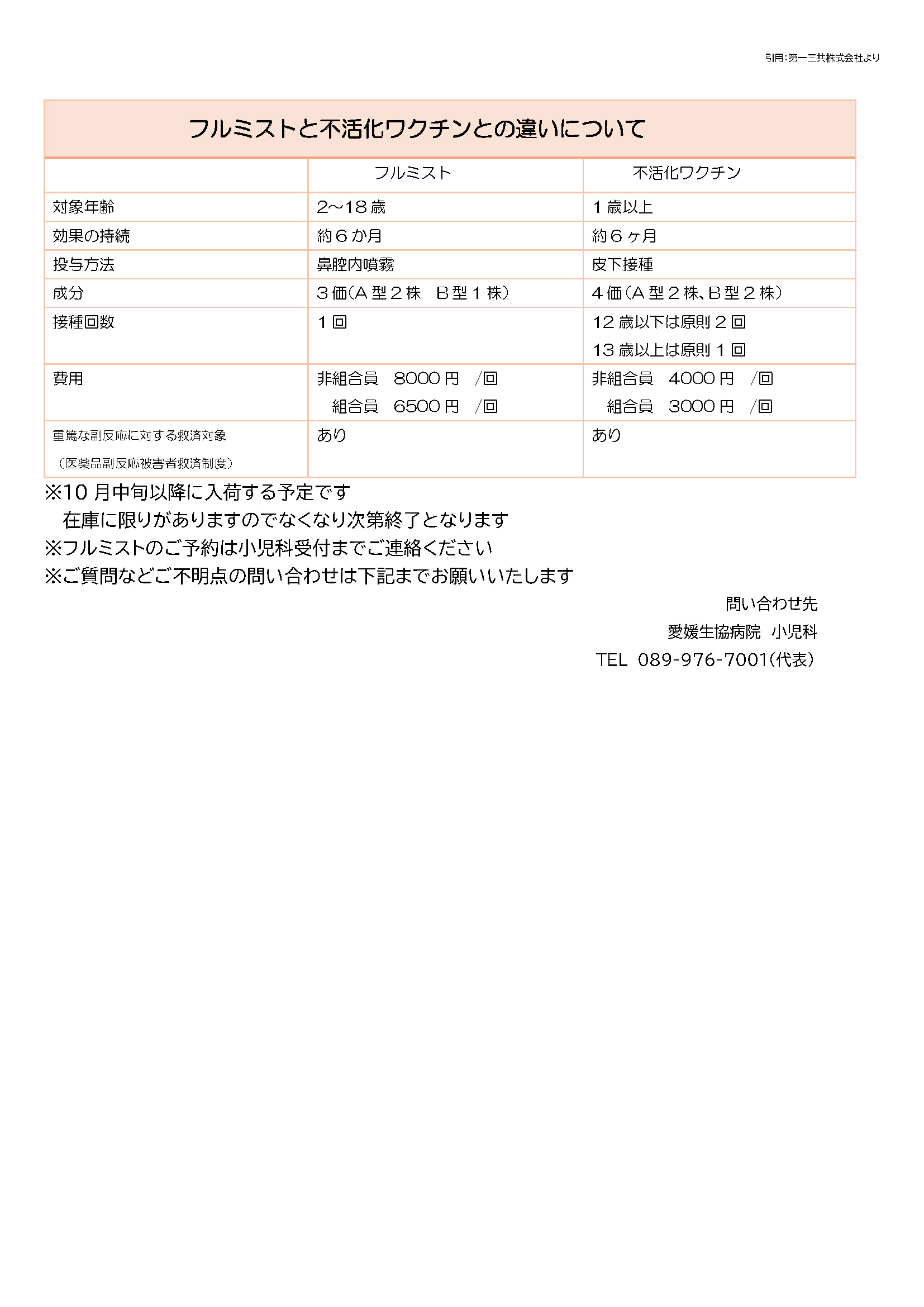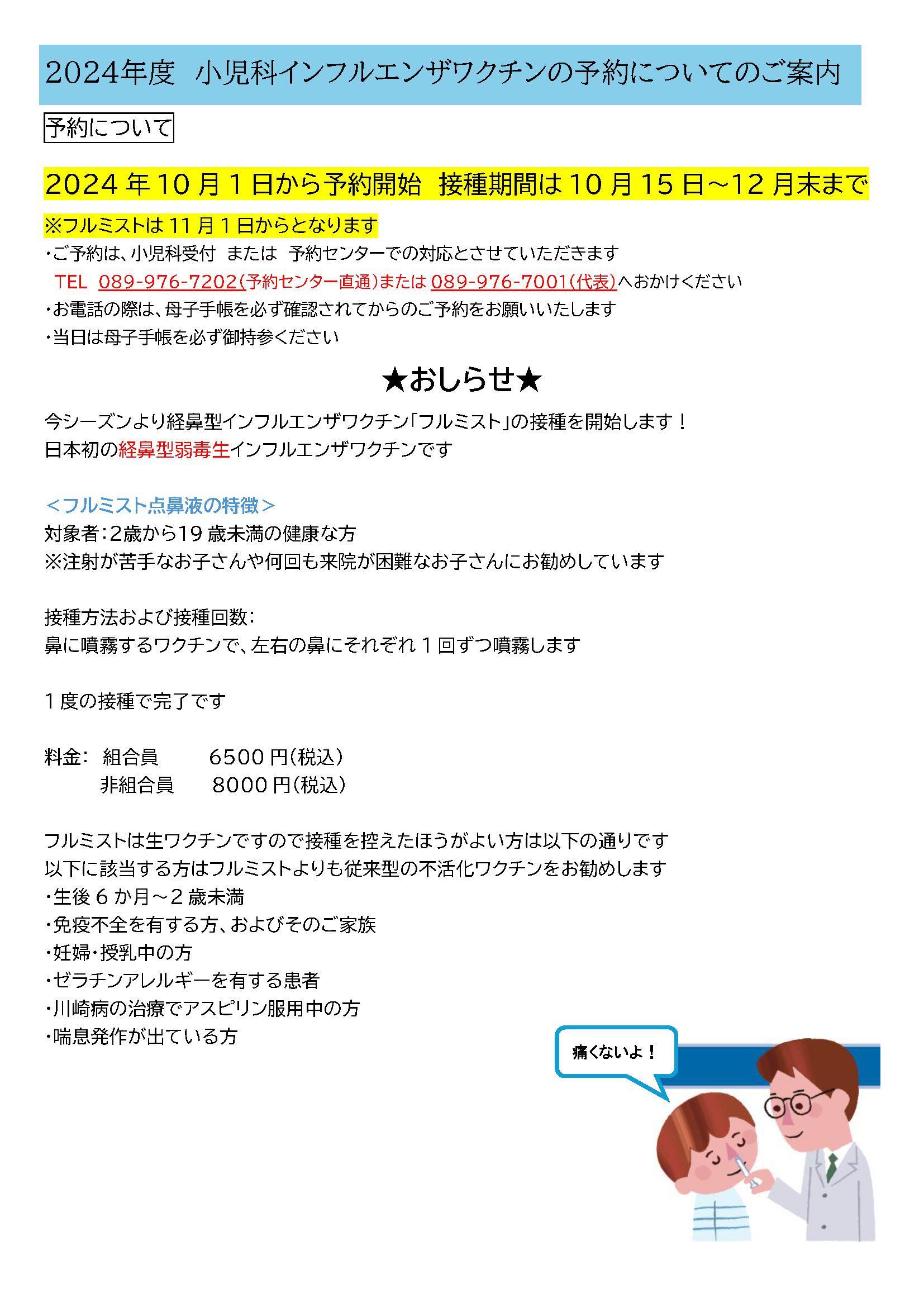 2024年度 小児科インフルエンザワクチンの予約についてのご案内
